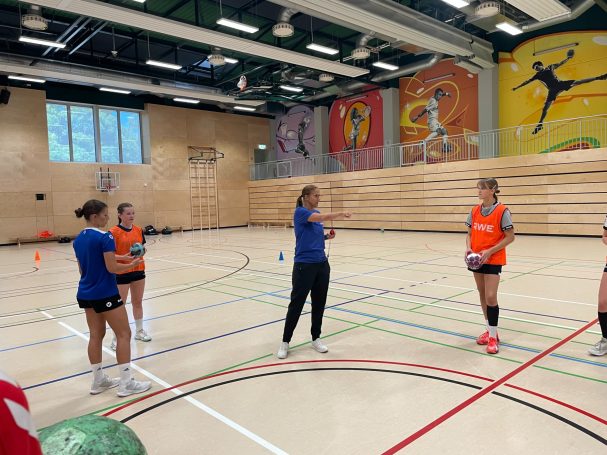 Zum Abschluss des Trainingslagers der weiblichen B-Jugend des HSC Schweich absolvierte Heike Ahlgrimm Chef-Bundestrainer des weiblichen Nachwuchs beim Deutschen Handballbund eine 150 minütige Trainingseinheit in Schweich.