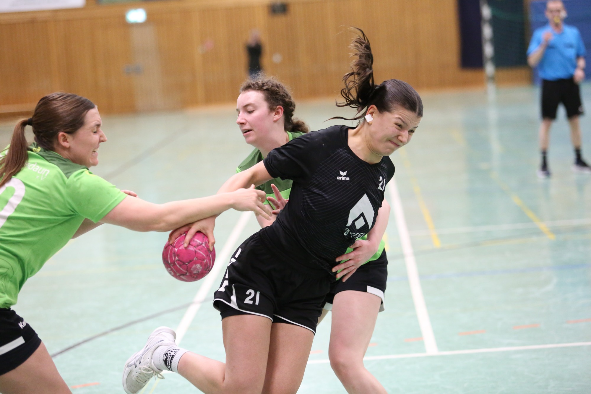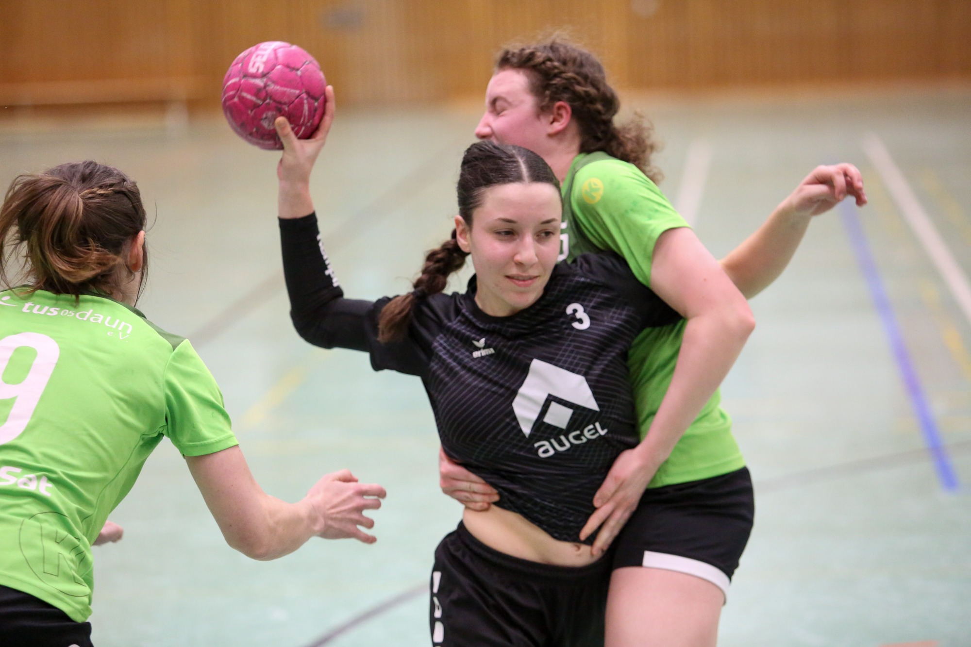 Daun gewinnt das vier-Punkte Spiel gegen den Tus Weibern und setzt sich weiter vom Tabellenletzten aus Bad Ems, der in Trier ein klare Niederlage einstecken musste, ab. Das Team von Trainer Can Steuernagel ließ lediglich die 1:2 Führung der Gäste (6.) zu, drehte das Spiel über 4:2 (11.) und verteidigte die knappe Führung bis zum 7:6 (18.) Mia von Koten und Kathi Schick sowie Lena Kretzer sorgten mit ihren Treffern dann für den beruhigenden vier Tore Vorsprung zum 10:6 (26.) den man mit in die Pause nahm. Die Anfangsphase der zweiten Hälfe aber verschlief das Steuernagel Team und das bestrafte Weibern mit dem Ausgleich zum 11:11 (34.) und hatte jetzt das Momentum auf seiner Seite. Doch Daun fing sich zum richtigen Zeitpunkt und erneut war es Lena Kretzer, die Verantwortung übernahm und ihre Mannschaft in Führung warf. Die Treffer von Mia van Koten, Finja Katzer, Kathi Schick und erneut Lena Kretzer sollten beim 16:11 (42.) für die Auszeit der Gäste sorgen. Doch jetzt verteidigte das Dauner Team die Führung, Steuernagel nahm beim 18:13 (46.) die Auszeit und spätestens beim 22:15 (54.) war die Messe in Daun zugunsten der Heimmannschaft gelesen.