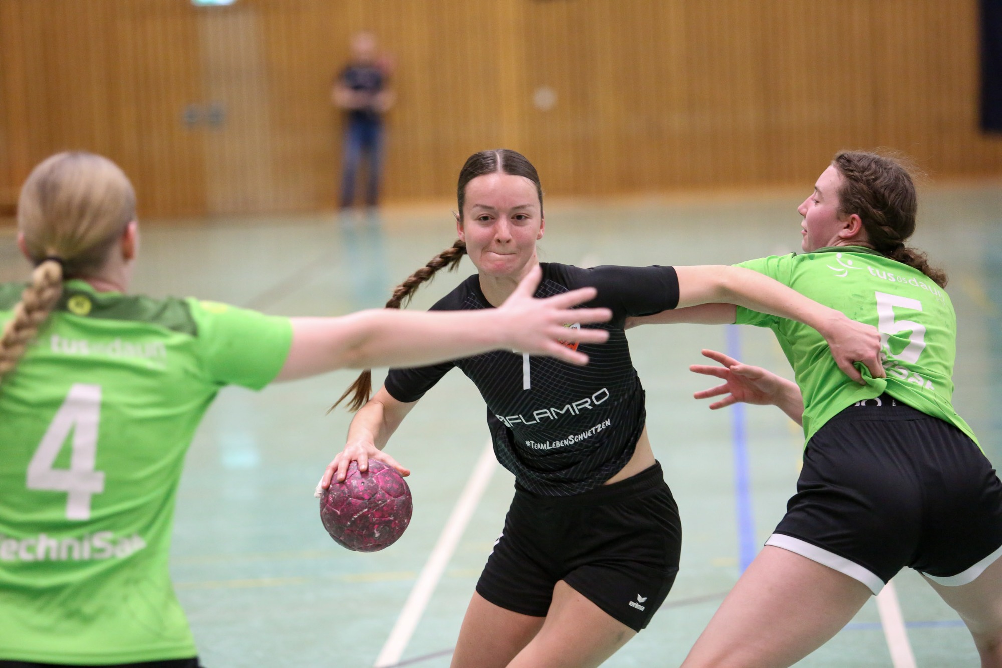 Kathi Schick und Mia van Koten sorgten gleich nach dem Wiederanpfiff für den 16:12 (34.) Anschluss. Lena von Gliszcynski und Daniela Salz waren von der Dauner Deckung nie auszuschalten, waren bis zu diesem Zeitpunkt mit 11 Treffern maßgeblich an der Führung des Drittletzten der Tabelle verantwortlich. Hoffnung keimte auf Gästeseite auf, als Kerstin Teusch mit ihrem Treffer auf drei Tore zum 18:15 (39.) verkürzte, die Mannschaft jetzt den drei Tore Rückstand bis zum 19:16 (40.) „verteidigte“, ehe den Gastgeberinnen über 21:16 (42.) die erneut klare Führung gelang, die dann spielentscheidend auf 26:18 (52.) ausgebaut wurde. Die Auszeit von Gästetrainer Can Steuernagel beim 28:19 (57.) konnte nur noch dazu dienen, das Ergebnis nicht noch deutlicher werden zu lassen und zumindest das gelang! So gelang den Gästen aus der Eifel eine zweite Halbzeit, die fast ausgeglichen gestaltet wurde, doch am Ende waren es genau die Gegentore zu viel, die sich die Mannschaft in den Anfangsminuten eingefangen hatte.