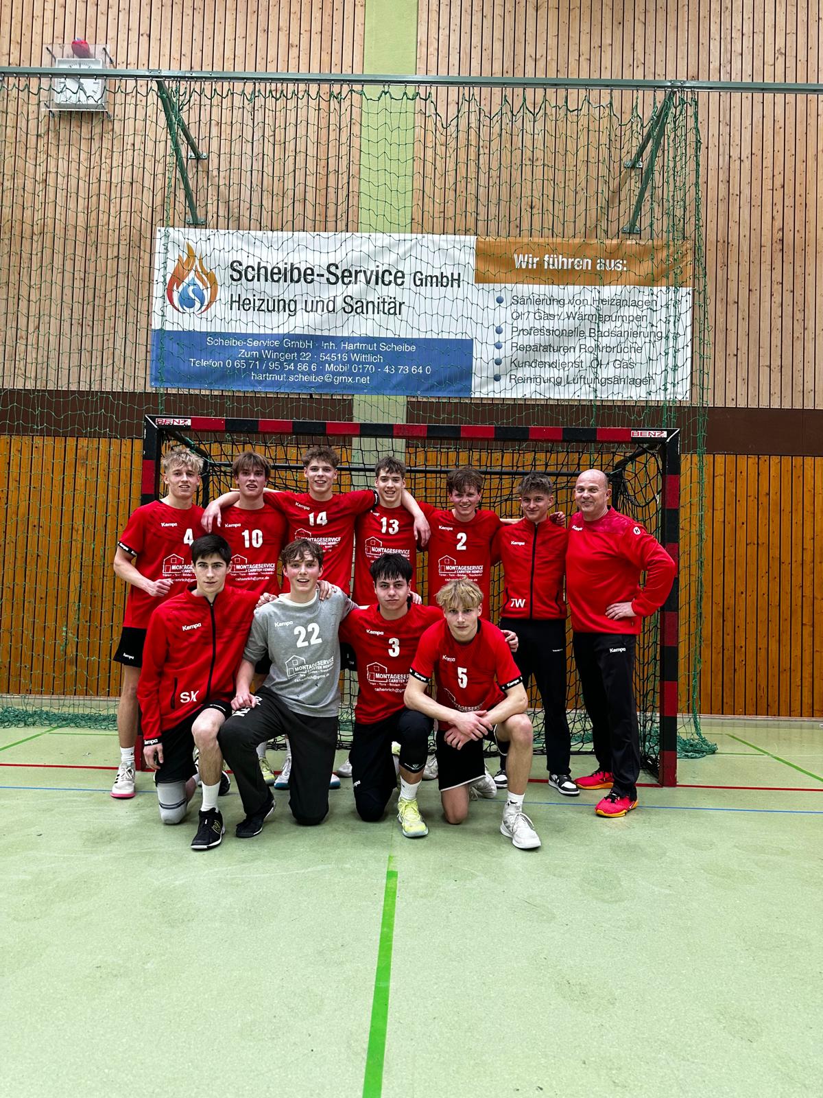„Ohne Luis Föhr und Oskar Hemmerden, die für Bitburg bzw Daun in den Herrenmannschaften im Einsatz waren, kamen wir zu einem ungefährdeten Sieg im Hochwald. Beim Aufwärmen verletzte such zudem noch Bennet Rohring. Nach ausgeglichenem Beginn steigerten wir uns in der Abwehr. Ben Gerhardy - Salas und Jaron Wünnenberg kamen immer wieder zu einfachen Ballgewinnen. So konnten wir uns bis zur 23. Minute einen 9 Tore Vorsprung erspielen. In der zweiten Halbzeit steigerten sich die Gastgeber erheblich. Wir dagegen agierten in der Abwehr zu passiv und ließen im Angriff im Abschluss die nötige Konzentration vermissen. So blieb es am Ende bei einem Sieg mit 9 Toren Differenz“, berichtet Wittlichs Trainer Olaf Gierenz
